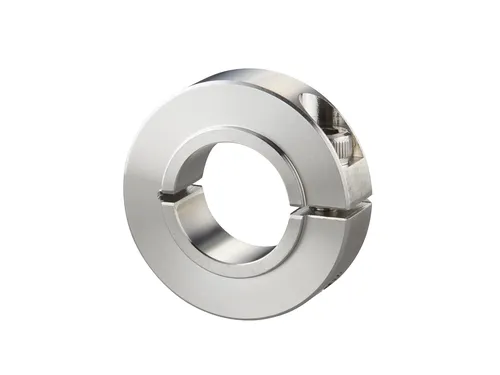Iwata Slit Shaft Collars provide superior fastening power. They are secured into place with a socket screw on one side. This prevents shaft surfaces from getting scratched. The socket head cap screw is positioned conveniently on its side for easy access. Slit Shaft Collars can accommodate bore diameters from 3mm up to 120mm.