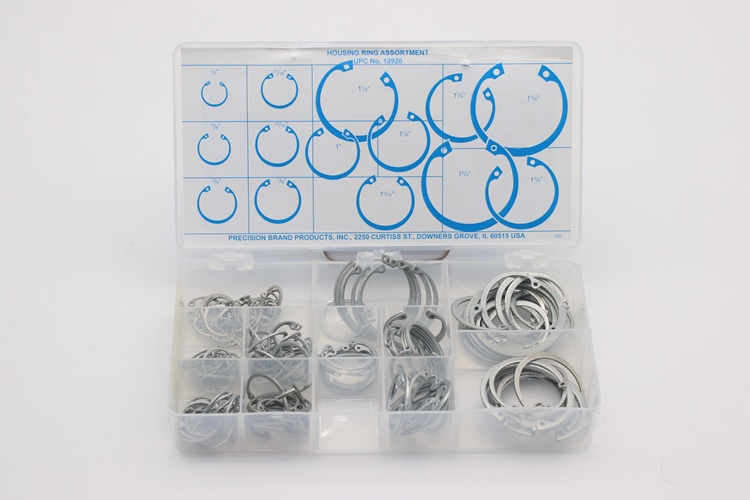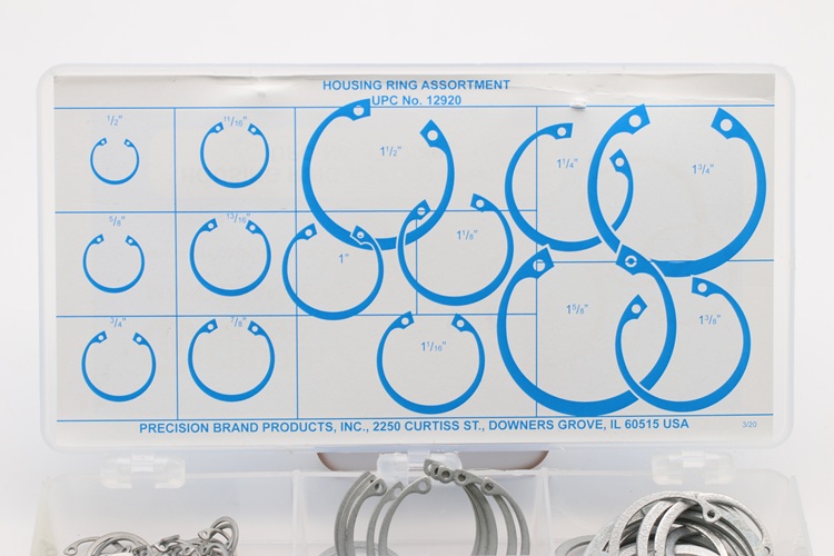 Precision Brand Housing Rings are internal rings with tapered design. They are used to maintain constant pressure to prevent slippage of axles, gears, and bearings inside machinery housing. Precision Brand Housing Ring assortment kits are handy to have around for shop toolroom or toolbox. Having them on hand when needed saves time and money.