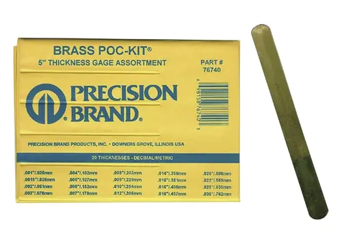 20 Piece Feeler Gauge Brass Poc-Kit Assortment, 1/2″ Wide x 5″ Long Blades, 76740