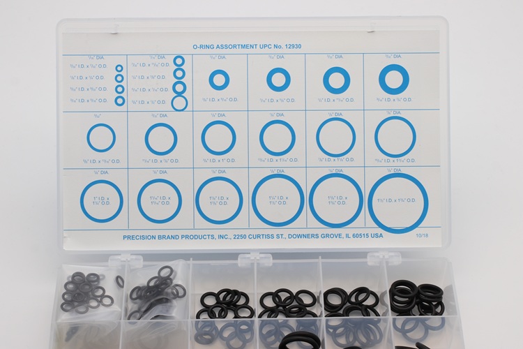 Precision Brand O-Rings are made of BUNA-N 70 durometer rubber compound. These create a tight seal for fluid or gas connections. Precision Brand O-Ring assortments are stored in a handy kit for shop toolroom or toolbox. Having them on hand when needed saves time and money.