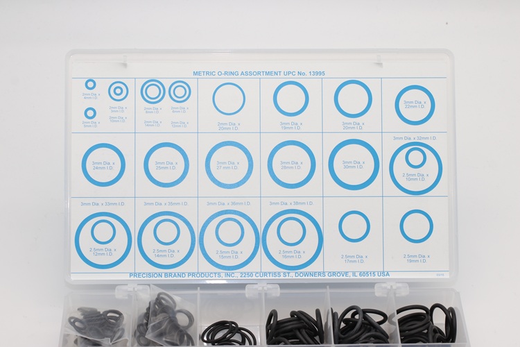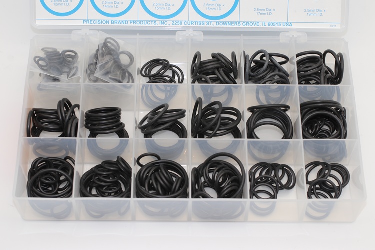 Precision Brand O-Rings are made of BUNA-N 70 durometer rubber compound. These create a tight seal for fluid or gas connections. Precision Brand O-Ring assortments are stored in a handy kit for shop toolroom or toolbox. Having them on hand when needed saves time and money.