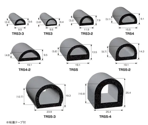 Rubber seals are foam rubber cushioning materials with adhesive tapes and are easy to install. They are characterized by their high weather and chemical resistance. Their internal structure is foam sponge, which provides excellent cushioning, and their surface is coated by extrusion molding, which provides excellent durability.