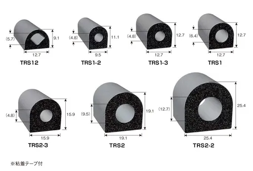 Rubber seals are foam rubber cushioning materials with adhesive tapes and are easy to install. They are characterized by their high weather and chemical resistance. Their internal structure is foam sponge, which provides excellent cushioning, and their surface is coated by extrusion molding, which provides excellent durability.