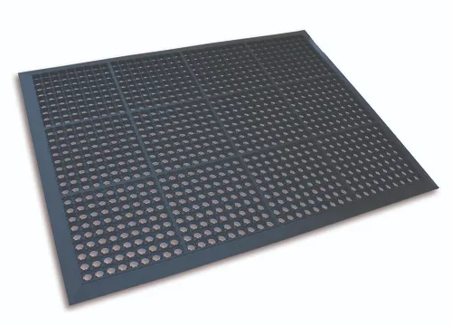 Industry is a heavy duty drainage mat for use in extremely wet or oily environments, or other working conditions that require significant material pass through like sandblasting. Large areas can be fused together or linked with mechanical fasteners to facilitate moving or reconfiguring.
