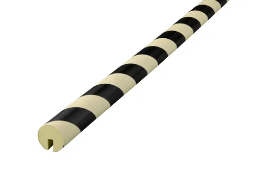 Knuffi® warning and protective bumper guards are very flexible, absorb impact forces, and allow for easy installation even on curved objects. Another advantage is the protective film, which protects the guards against color abrasion even under heavy use. Shown here are bumper foam guards which are used on plate edges.