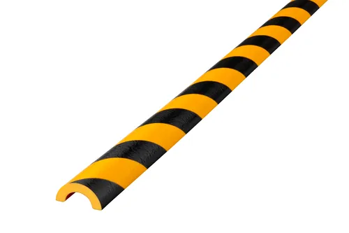 Knuffi® warning and protective bumper guards are very flexible, absorb impact forces, and allow for easy installation even on curved objects. Another advantage is the protective film, which protects the guards against color abrasion even under heavy use. Shown here are bumper foam guards which are suitable for diameter 30mm round bars.