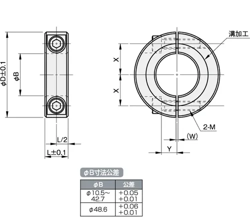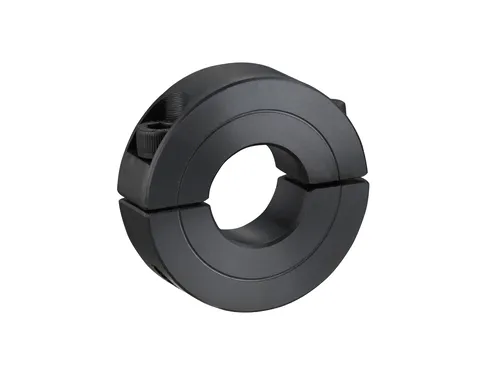 Available in a two-piece clamp design, split shaft collars are easily assembled and removed without the need to remove the shaft from its current operation. Split shaft collars can easily installed from one end and secured with two hexagon socket head cap screws on its sides.