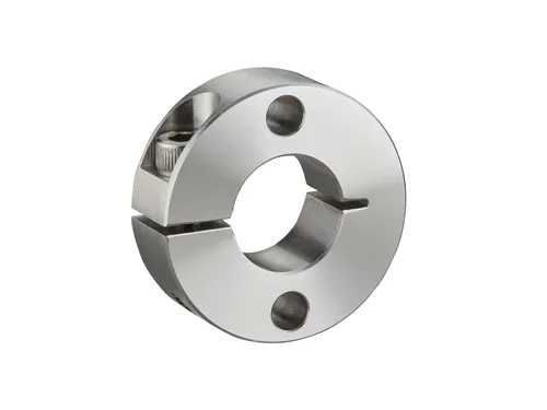 Slit shaft collars are great where shaft protection is of optimal importance. These shaft collars can slide along the shaft without any fear of scratching or denting. Slit shaft collars can be secured effectively with a socket head cap screw located on its side.