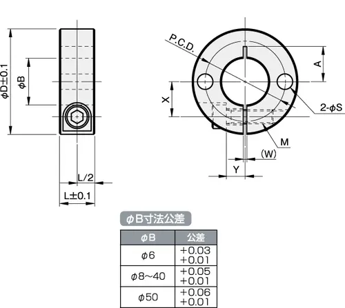 Slit Shaft Collar with 2 Holes, ID 8mm x OD 25mm, 10mm Long, 304 Stainless Steel, SCS0810SP2
