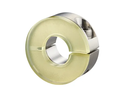 Slit shaft collars are great where shaft protection is of optimal importance. These shaft collars can slide along the shaft without any fear of scratching or denting. Slit shaft collars can be secured effectively with a socket head cap screw located on its side.