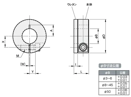 Slit Shaft Collar with Damper, ID 8mm x OD 30mm, 18mm Long, Carbon Steel S45C (Electroless Nickel Plating), SCS0818MD