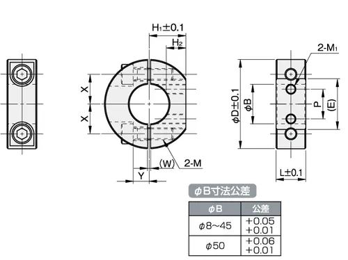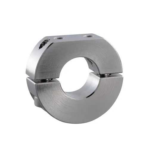 Available in a two-piece clamp design, split shaft collars are easily assembled and removed without the need to remove the shaft from its current operation. Split shaft collars can easily installed from one end and secured with two hexagon socket head cap screws on its sides.