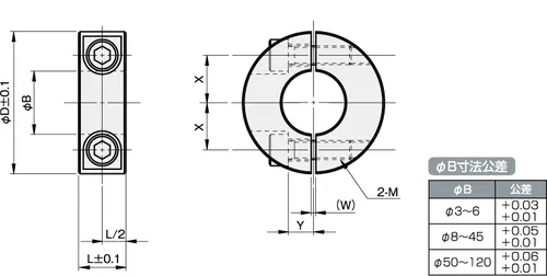 Available in a two-piece clamp design, split shaft collars are easily assembled and removed without the need to remove the shaft from its current operation. Split shaft collars can easily installed from one end and secured with two hexagon socket head cap screws on its sides.