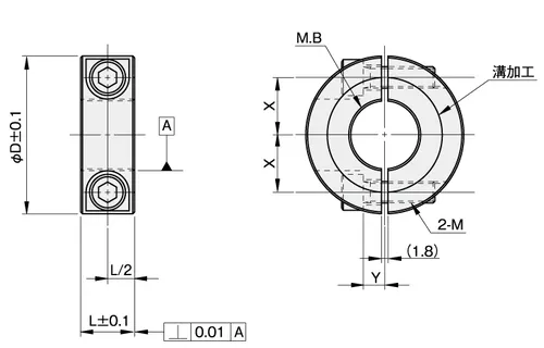 Split Shaft Collar with Threaded Internal Diameter M35(1.5P) x OD 60mm, 15mm Long, Carbon Steel S45C (Black Oxide), SCSS35H15C