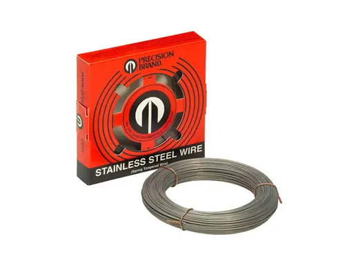 Precision Brand® stainless steel wire is spring tempered and made from full hard, 300 series stainless steel. These have excellent corrosion resistance and are produced to a smooth finish. Applications include springs, wire forms, control linkages, armature binding, ceramic cutting, and a variety of industrial uses.