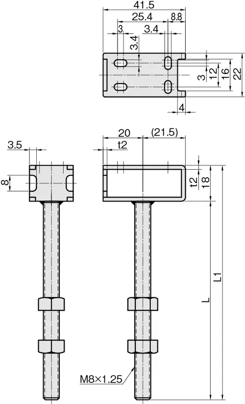 Threaded Screw Shaft Photoelectric Sensor Bracket for Mounting Horizontal Sensors, M8 x L100mm Wide, 304 Stainless Steel, FSCZCH100-M8S