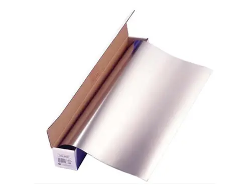 This cut-to-fit Tool Wrap foil creates an airtight envelope around your part. It can be cut, folded, and crease-sealed with ease. Will not tear easily in normal use. Realize the benefits of a vacuum furnace at a fraction of the cost. Shown here is a Tool Wrap in a roll 24 inches wide and 100 feet long.