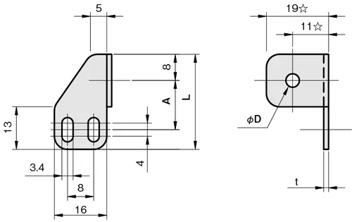 Type E3-SY Right-sided Photoelectric Sensor Bracket, M4, 29mm Long x 16mm Wide, 304 Stainless Steel, FSE3SY015-R4S