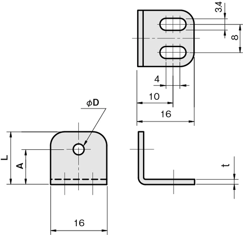 Type L Bracket for Optical Fibre Sensors, M3, 15mm Long x 16mm Wide, Thickness 1.5mm, 304 Stainless Steel, FS03LT010-S