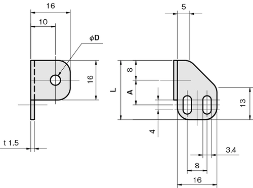 Type L Bracket, Left Mount, for Optical Fibre Sensors, M6, 24mm Long x 16mm Wide, Thickness 1.5mm, 304 Stainless Steel, FS06LH010-S