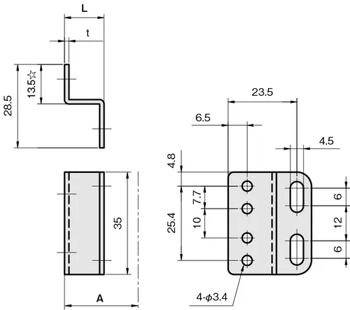 Type RB-Z Bracket for Reflector Sensors, 13.5mm Long x 35mm Wide, Steel (Cation Electrodeposition Plating), FSRBZX025-Z