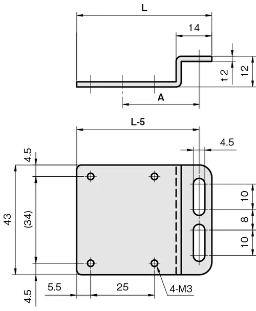 Type RC-Z Bracket for Reflector Sensors, 52mm Long x 43mm Wide, 304 Stainless Steel, FSRCZX029-S