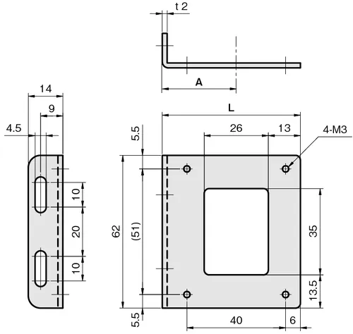 Type RD-Side Bracket for Reflector Sensors, 56mm Long x 62mm Wide, 304 Stainless Steel, FSRDSY030-S