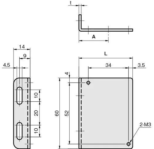 Type RE-Side Bracket for Reflector Sensors, 45.5mm Long x 60mm Wide, Steel (Cation Electrodeposition Plating), FSRESY025-Z