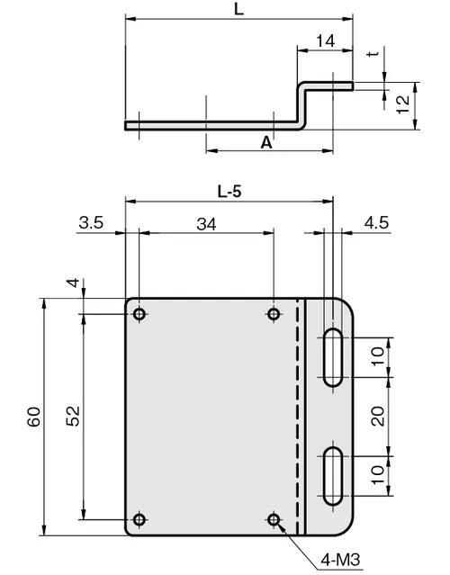Type RE-Z Bracket for Reflector Sensors, 57.5mm Long x 60mm Wide, Steel SPCC (Cation Electrodeposition Plating), FSREZX032-Z