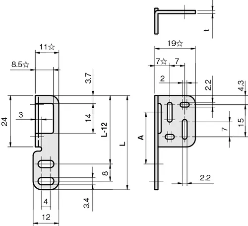 Type TS-SY Photoelectric Sensor Bracket, 59mm Long x 12mm Wide, 304 Stainless Steel, FSTSSY040-S