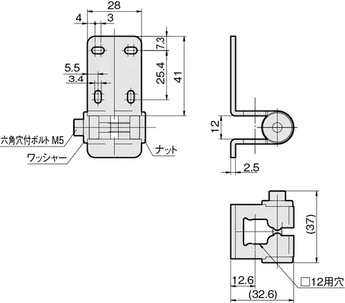 Type V Mount Photoelectric Sensor Bracket for Square Shafts □12mm Wide, 41mm Long x 28 x H12mm Wide, 304 Stainless Steel, FSFBZV-S2S