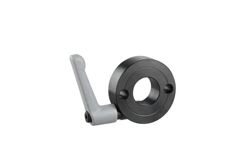 Wedge-lok shaft collars with clamping levers are simple to adjust for limited clamping spaces. The clamping lever is attached to the shaft collar and connected to an internal socket head cap screw. When the internal socket head cap screw is fastened, the Wedge-lok shaft collar secures itself onto the shaft