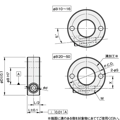Wedge-lok Shaft Collar with 2 Holes, ID 25mm x OD 50mm, 15mm Long, Steel S45C (Black Oxide Finish), SCK2515CP2
