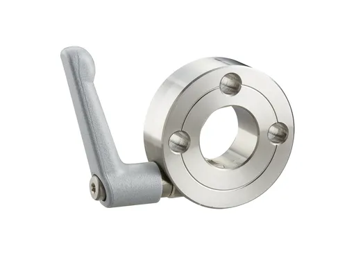 Wedge-lok shaft collars with clamping levers are simple to adjust for limited clamping spaces. The clamping lever is attached to the shaft collar and connected to an internal socket head cap screw. When the internal socket head cap screw is fastened, the Wedge-lok shaft collar secures itself onto the shaft