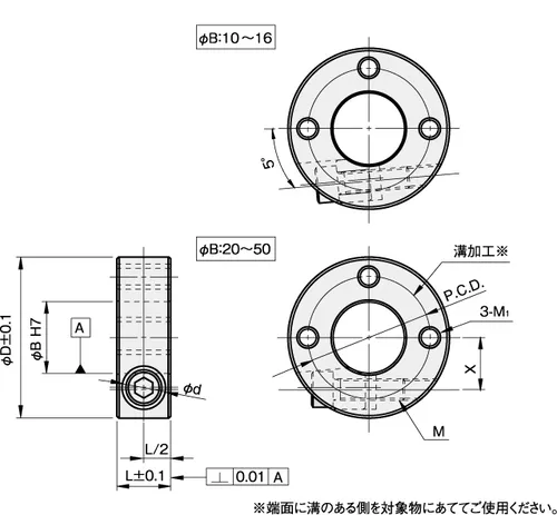 Wedge-lok Shaft Collar with 3 Threaded Holes, ID 50mm x OD 85mm, 20mm Long, Steel S45C (Black Oxide Finish), SCK5020CN2